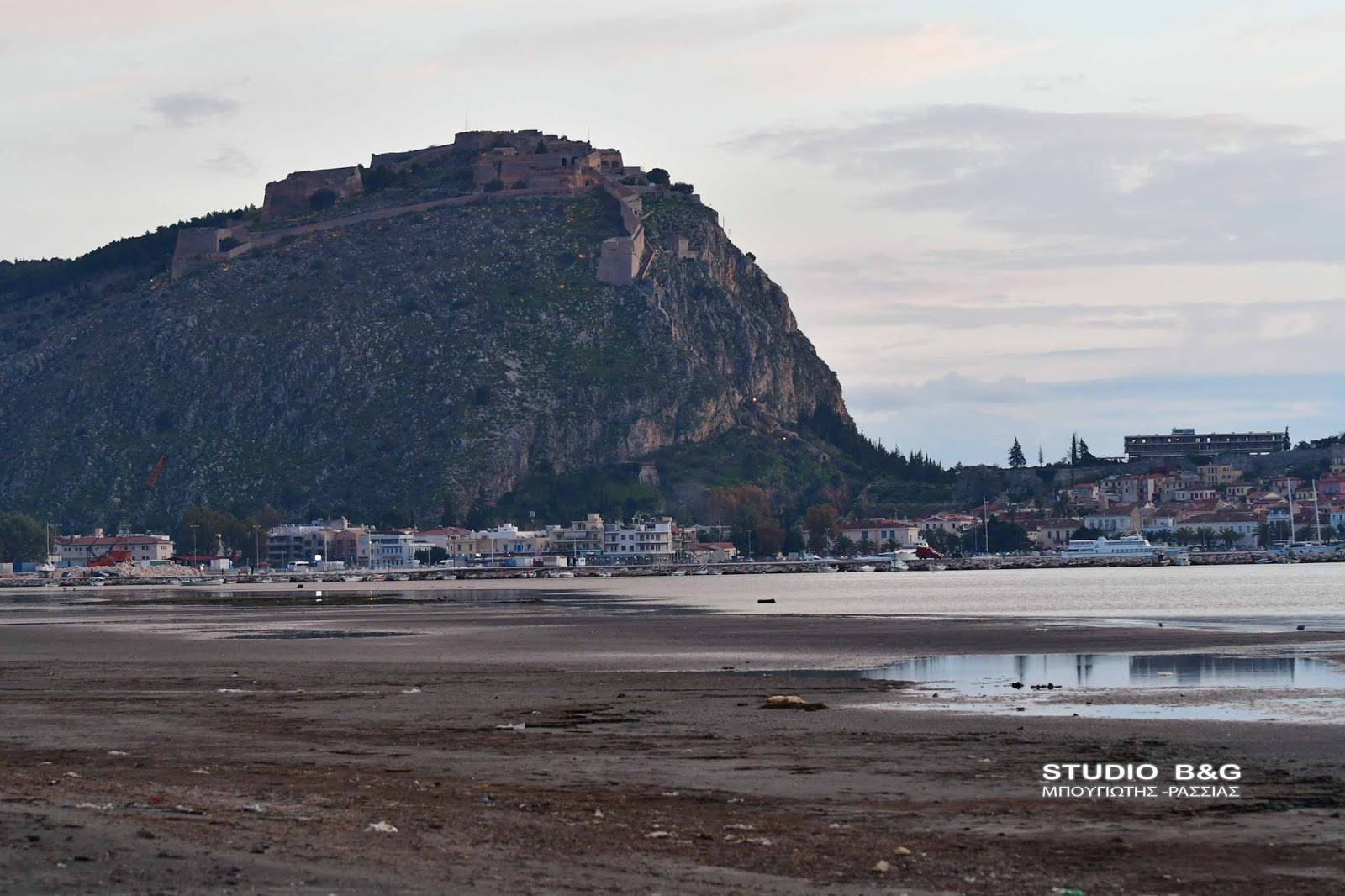 Η θάλασσα έγινε στεριά στο Ναύπλιο και μπορεί κανείς να φτάσει με τα πόδια στο Μπούρτζι.
