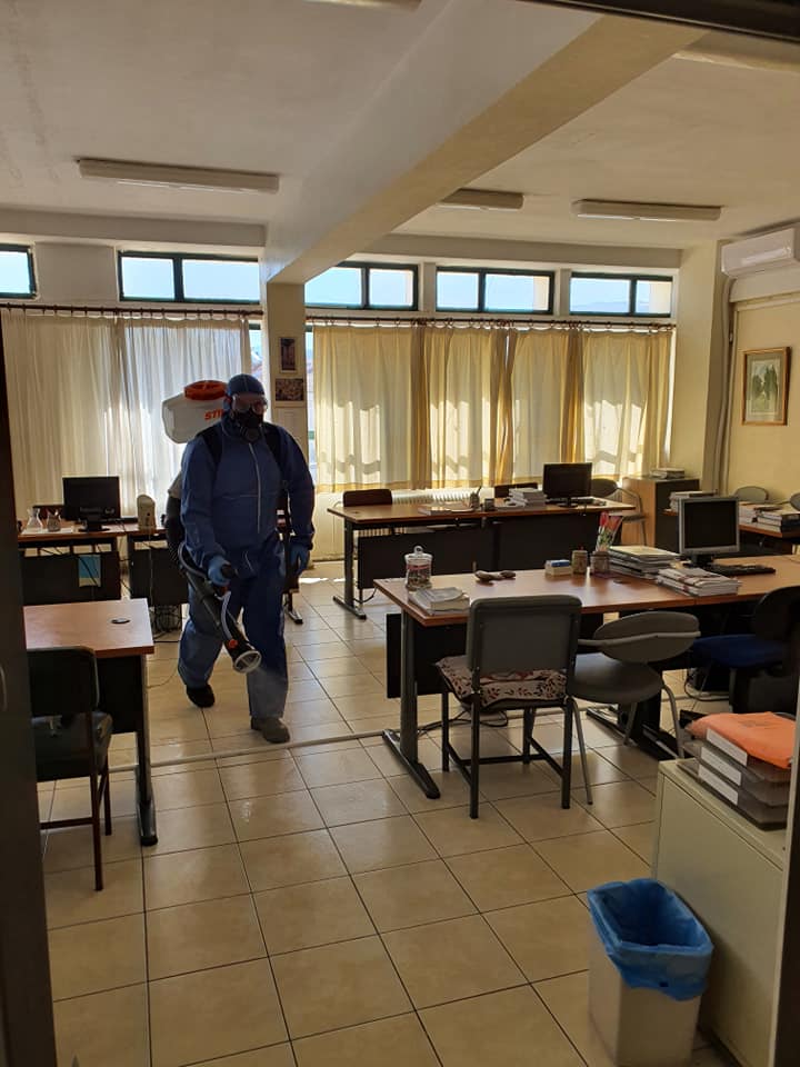 2. Επαναληπτικές απολυμάνσεις στο ΕΚΑΒ, στο Ταχυδρομείο, στο Γηροκομείο, στην Πυροσβεστική, στην Αστυνομική Διεύθυνση, στους χώρους του στρατοπέδου αλλά και στα οχήματα τους.