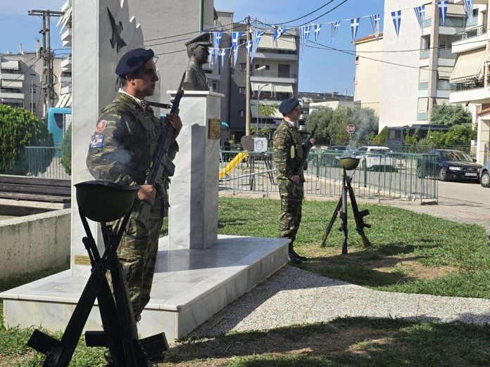 Η τελετή ξεκίνησε με επιμνημόσυνη δέηση και στη συνέχεια κατάθεση στέφανων από φορείς, εκπροσώπους ενόπλων δυνάμεων, σωμάτων ασφαλείας και την οικογένεια του Σμηναγού στο μνημείο με την προτομή του.